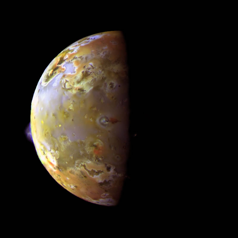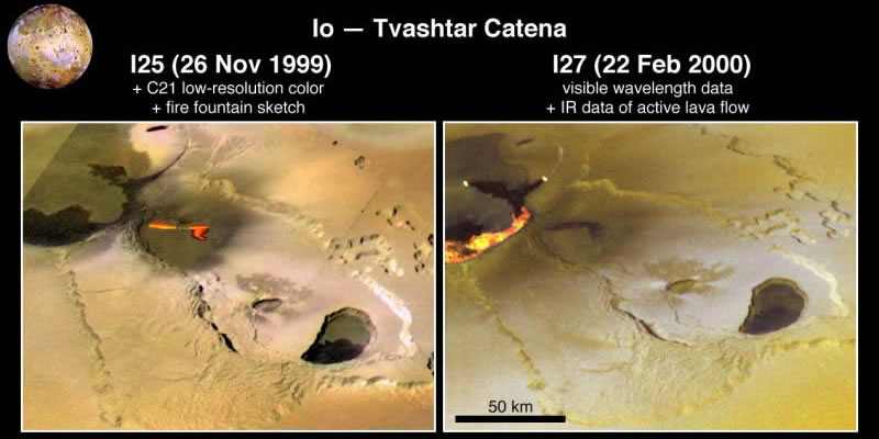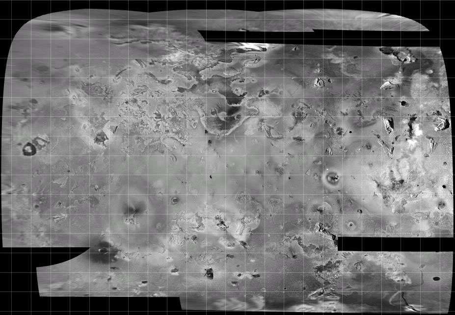 Io's surface is radically different from any other body in the solar system. It came as a very big surprise to the Voyager scientists on the first encounter. They had expected to see impact craters like those on the other terrestrial bodies and Instead of craters, Voyager 1 found hundreds of volcanic calderas.