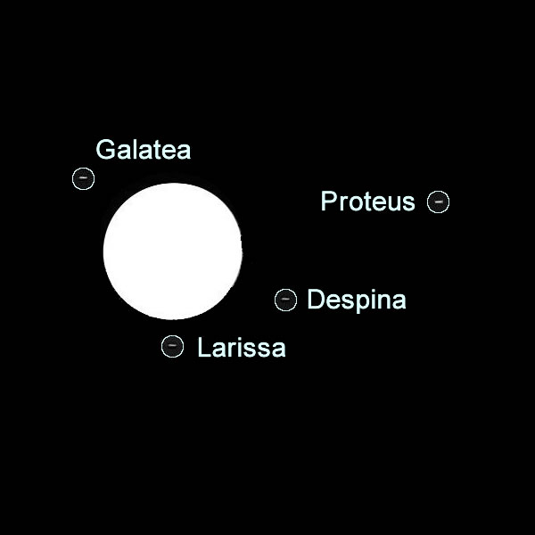 More than two centuries earlier, in 1613, Galileo observed Neptune when it happened to be very near Jupiter, but he thought it was just a star. On two successive nights he actually noticed that it moved slightly with respect to another nearby star. But on the subsequent nights it was out of his field of view. Had he seen it on the previous few nights Neptune's motion would have been obvious to him. But, alas, cloudy skies prevented obsevations on those few critical days.