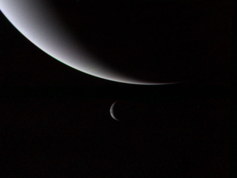 Neptune also has rings. Earth-based observations showed only faint arcs instead of complete rings, but Voyager 2's images showed them to be complete rings with bright clumps. One of the rings appears to have a curious twisted structure. Like Uranus and Jupiter, Neptune's rings are very dark but their composition is unknown.